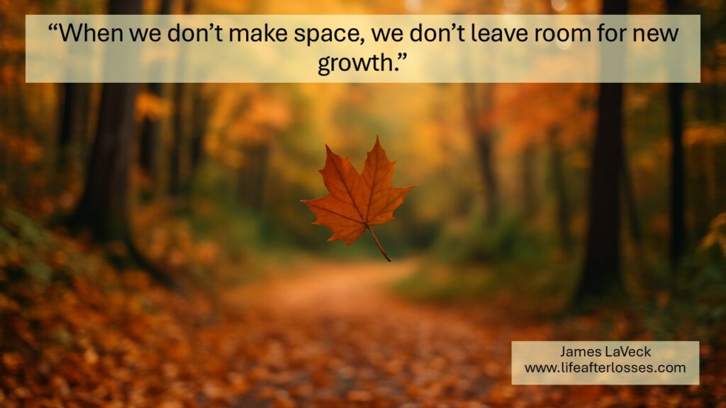 The changing season got me thinking about how much of grief, and of life itself, is about learning to let go. Trees don’t cling to their leaves. They release them, trusting that spring will bring new growth. For us, letting go isn’t as easy. We hold on to memories, roles, identities, and even pain. Sometimes we hold on because it’s all we have left. Sometimes we hold on because we’re afraid of what might come next.