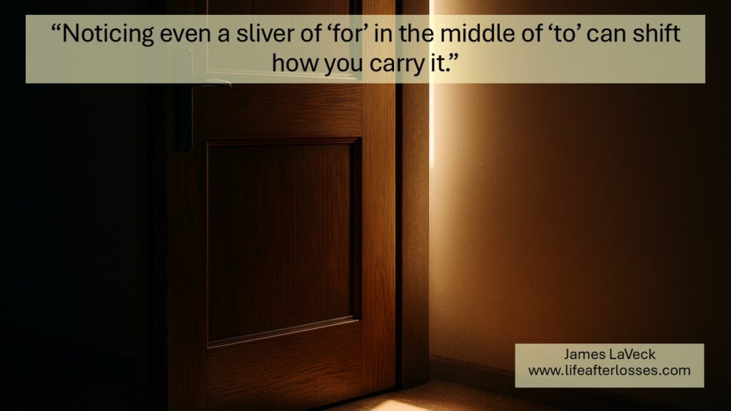 You don’t have to force an answer. You don’t have to make it noble or pretty. But noticing even a sliver of “for” in the middle of “to” can shift how you carry it.