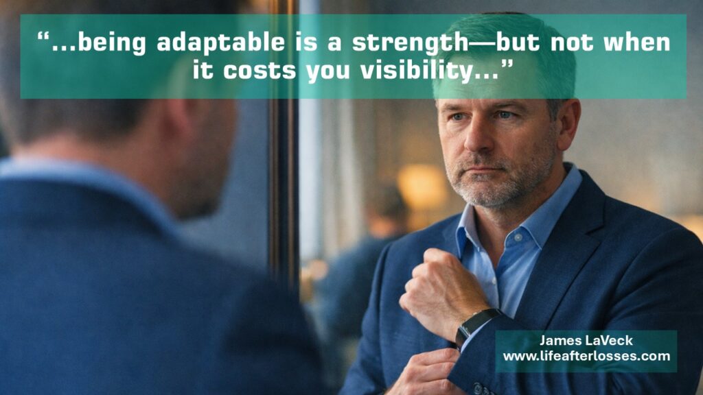 What many people don’t realize is that adaptability can make grief invisible. When you’re good at reading a room, you instinctively decide how much of yourself feels welcome there. And sometimes, grief doesn’t feel like it fits the space—especially when others aren’t carrying it themselves.